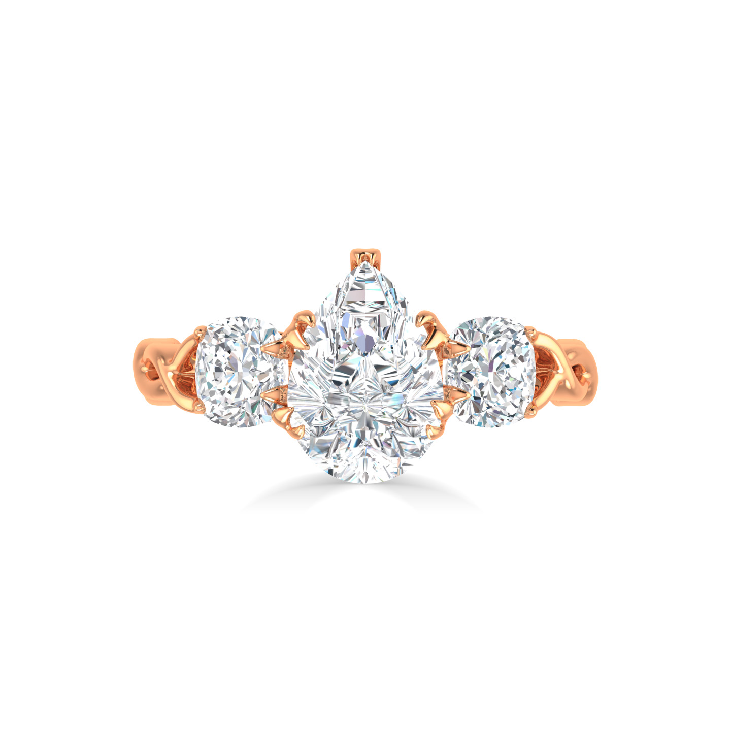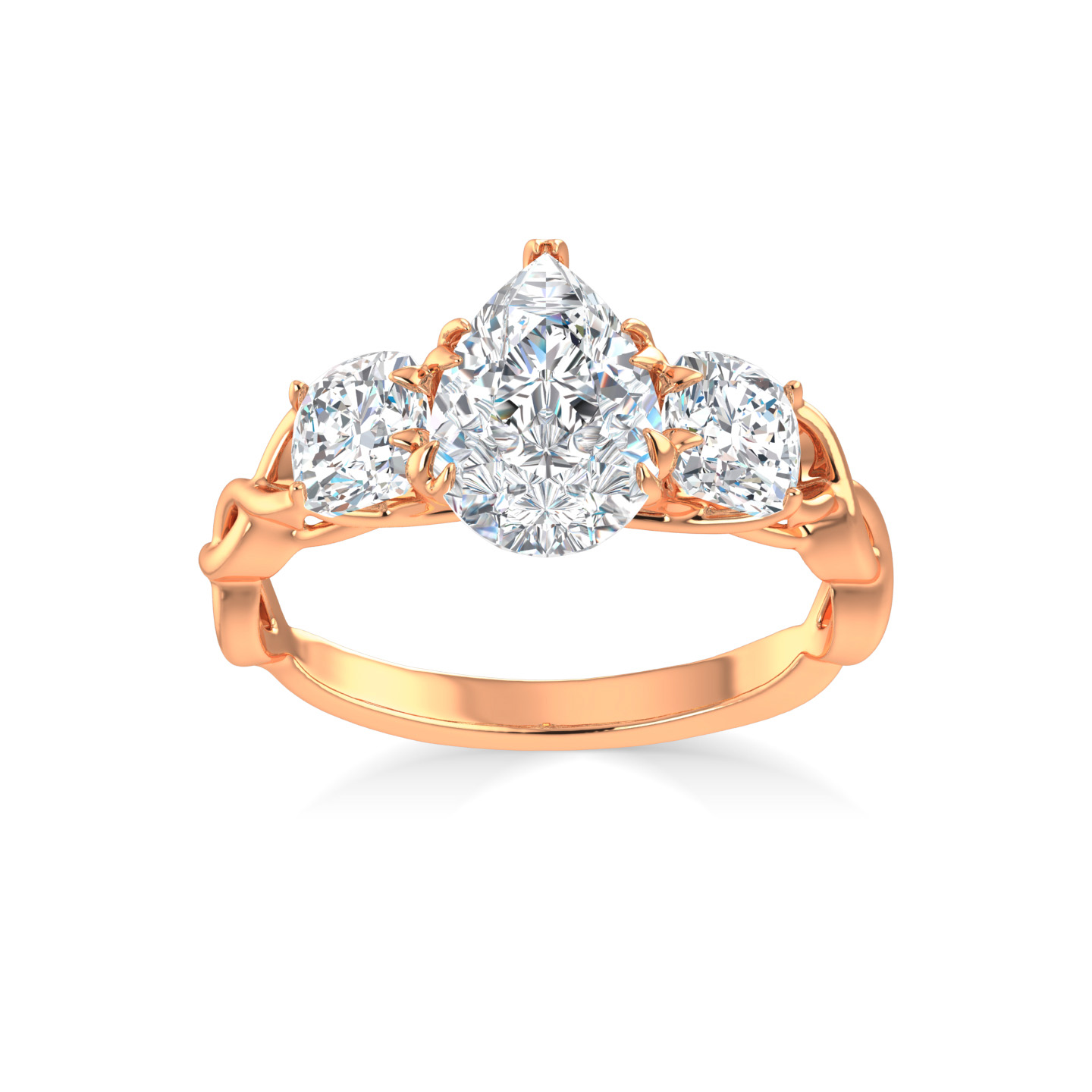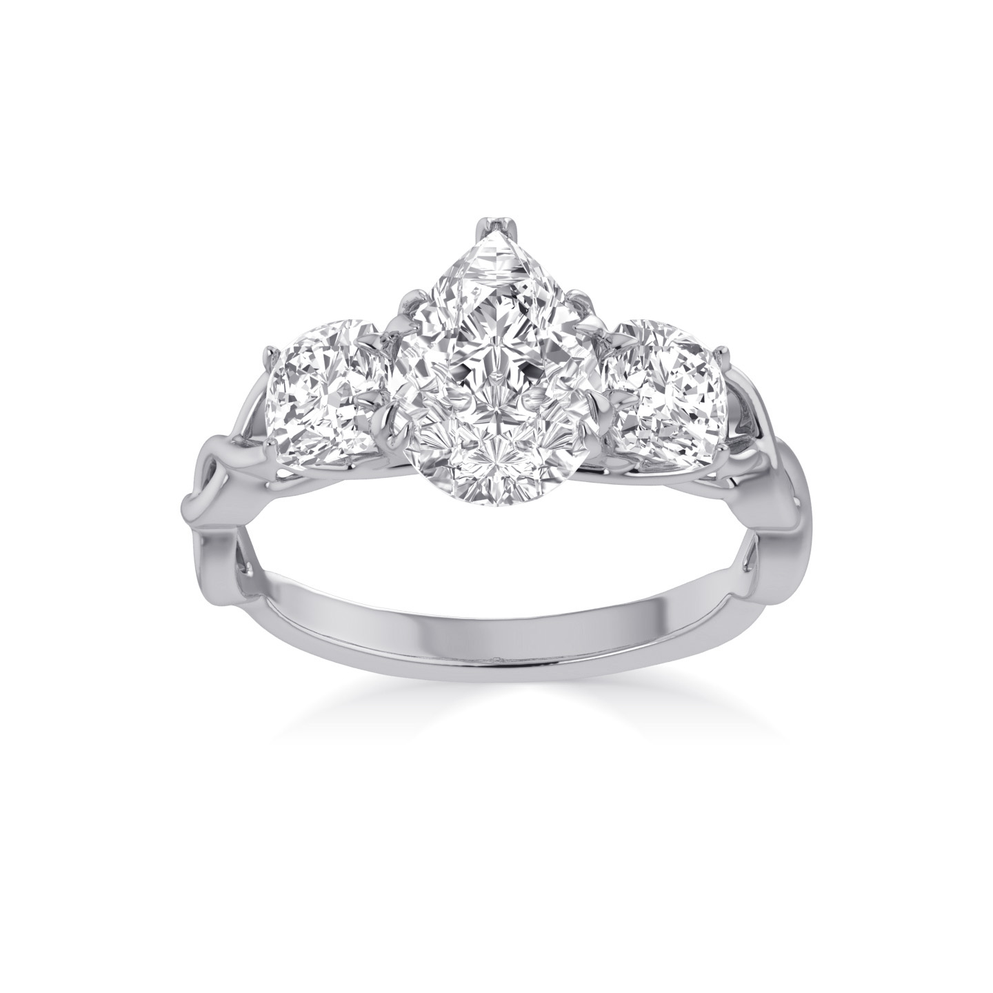 3 Stone Pear Designer Ring